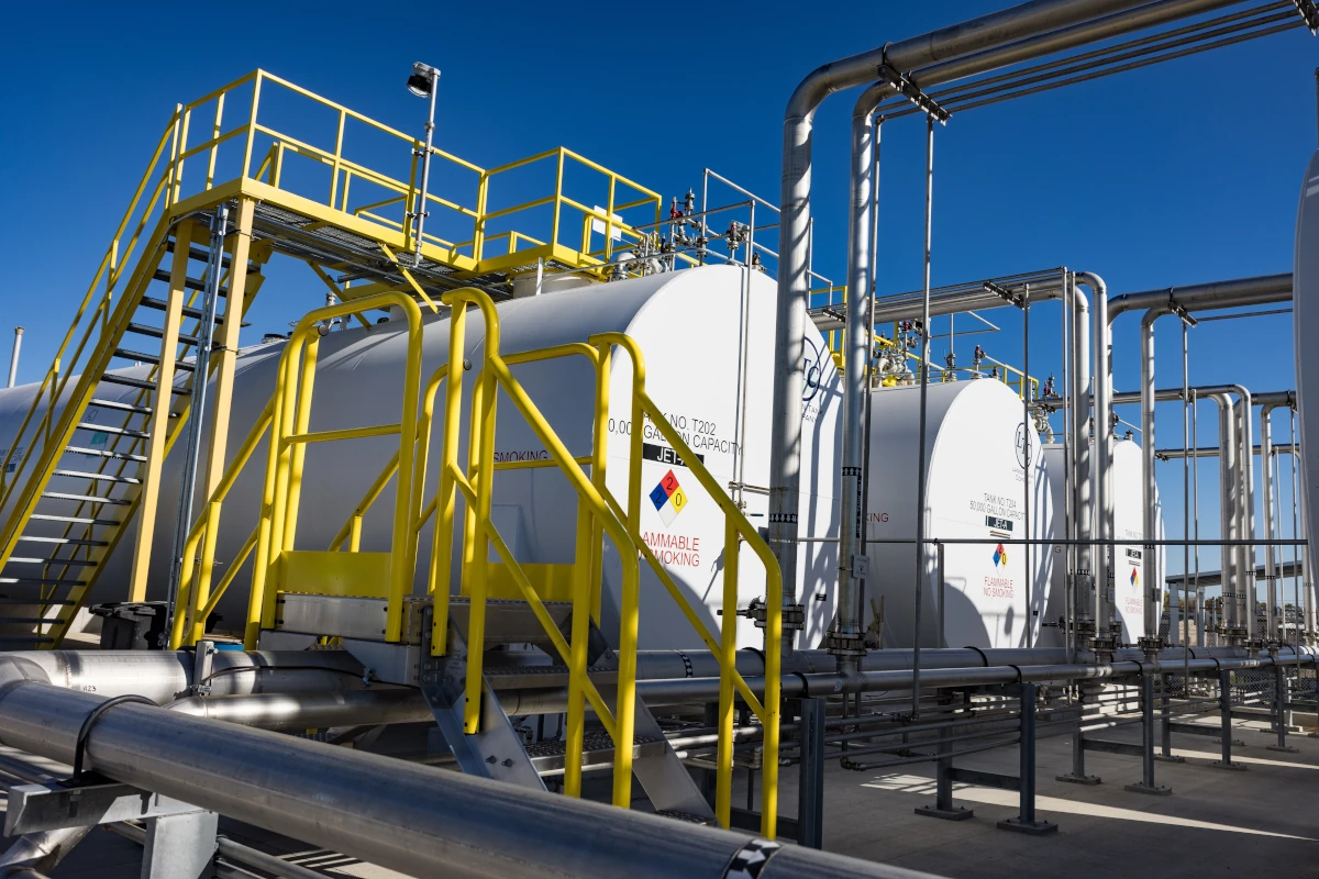 The project included six 50,000-gallon Jet A fuel tanks, as well as diesel and aviation gasoline storage tanks (12,000-gallon and 6,000-gallon) designed to support ground equipment. The facility also incorporates a self-service fuel dispensing system and automated usage tracking technology to ensure regulatory compliance and operational safety.